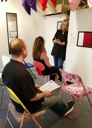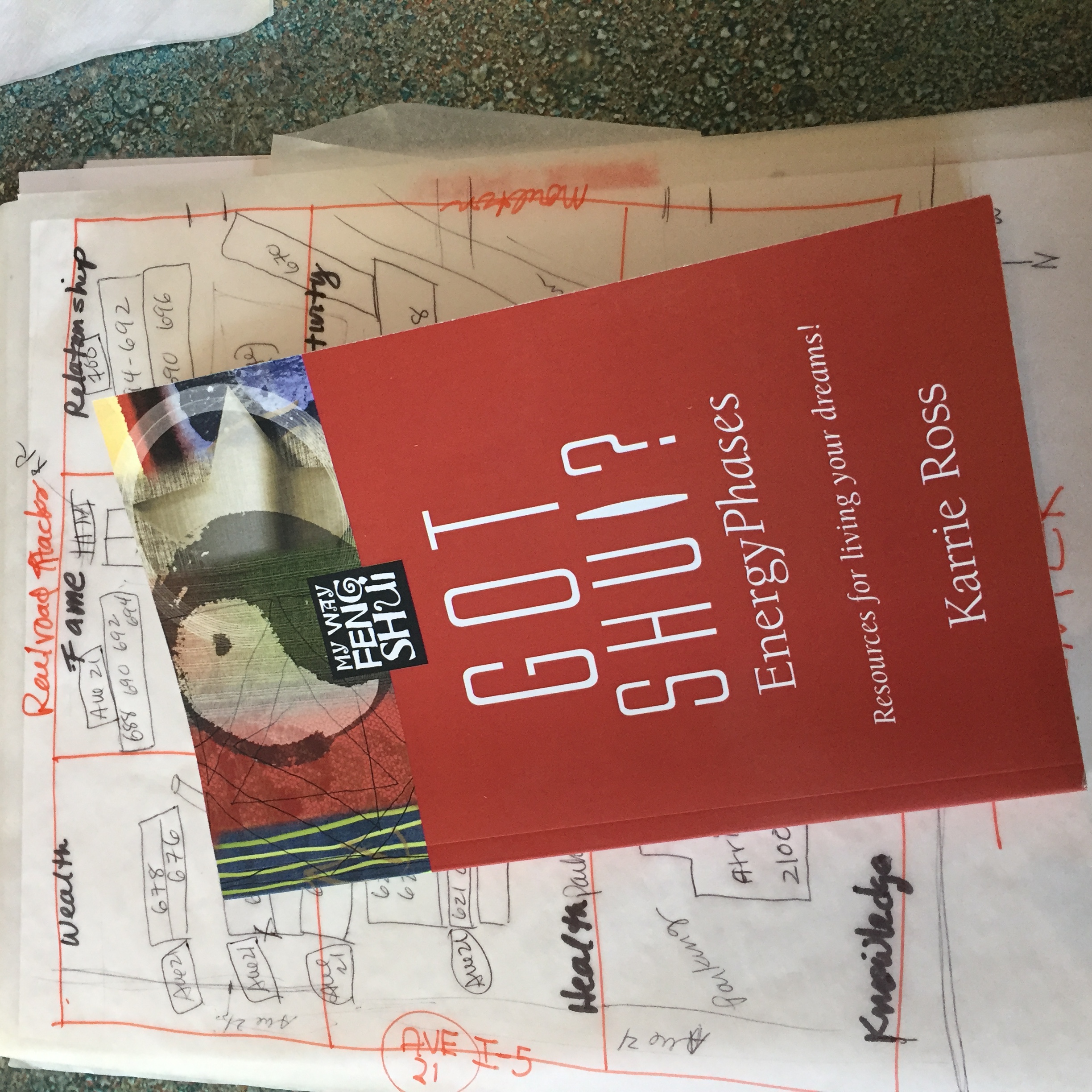 “Got Shui? A Moment, with Karrie Ross” QA/installation/performance begins with arranging 10 chairs as a 3D interactive energy ba-gua. 1.) Visitors are invited to help paint the chairs with the corresponding ba-gua elements, imagery, color, enhancing the energy. 2.) And are encouraged to sit in the chairs and openly discuss how she sees feng shui use and applications can change the energy of a space, and its inhabitants lives. 3.) There will be a handout diagram for a personalized room reading. (bring photos too.) 4.) Throughout the residency visitors will have access to a link, on Karrie’s website project page to download a pdf copy of the “Got Shui? Tips” book to enjoy. (the printed book is available for purchase from Amazon anytime.)