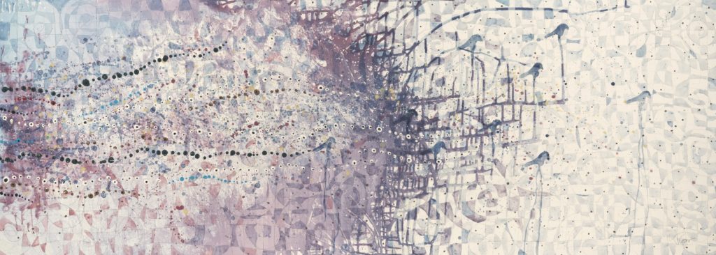 Blue Birds Surfing; 2015; 24x72; acrylic on canvas